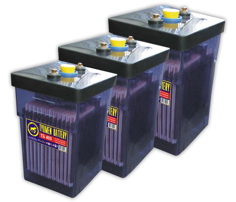Аккумуляторы типа «ТБ» номинальным напряжением 2В, соединяются в батарею медными освинцованными перемычками с помощью болтов М10. Болтовые соединения перемычек с борнами (выводами) укрыты резиновыми колпачками. Перемычки покрыты ПВХ изоляцией для предотвращения короткого замыкания. Решетки электродов изготовлены из малосурьмянистого сплава (1,5%), что обеспечивает очень низкий саморазряд и минимальное газовыделение. Корпуса выполняются из прозрачного и ударопрочного сополимера – Стирола.
