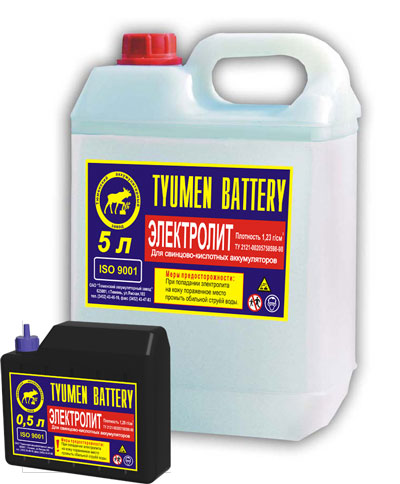 Электролит плотностью 1,26-1,28 (± 0,005) г/см3 применяется для заливки стартерных свинцово-кислотных аккумуляторных батарей и тяговых аккумуляторных батарей.